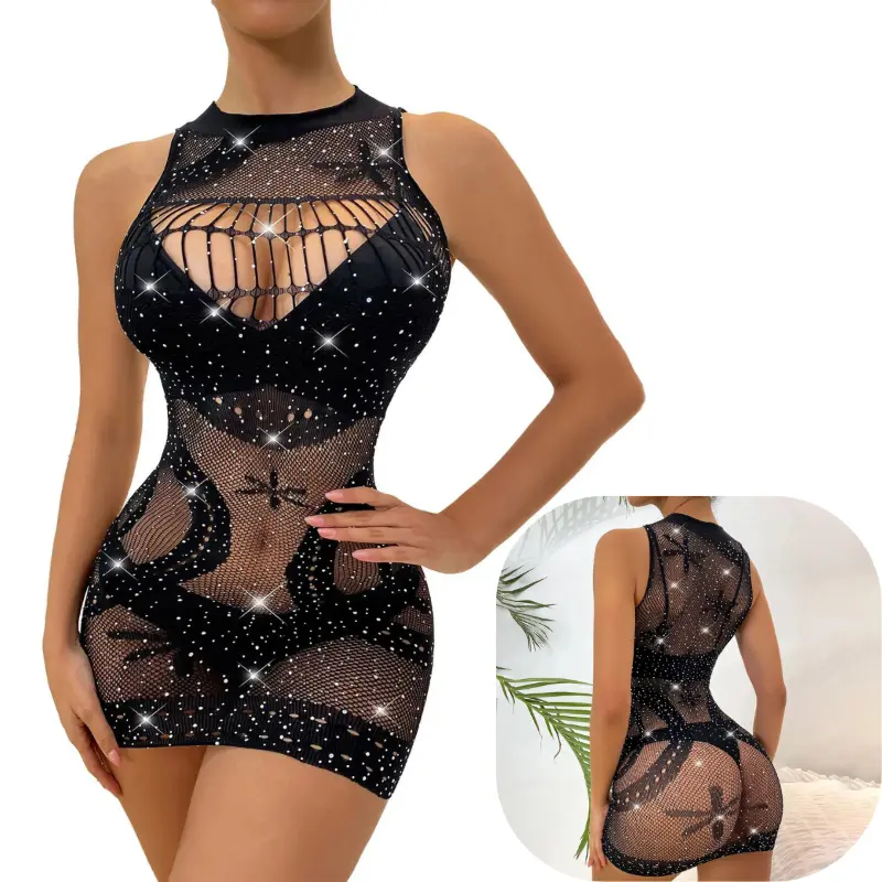 BODY EROTICO DE MICRO RED ELASTIZADO CON BRILLOS