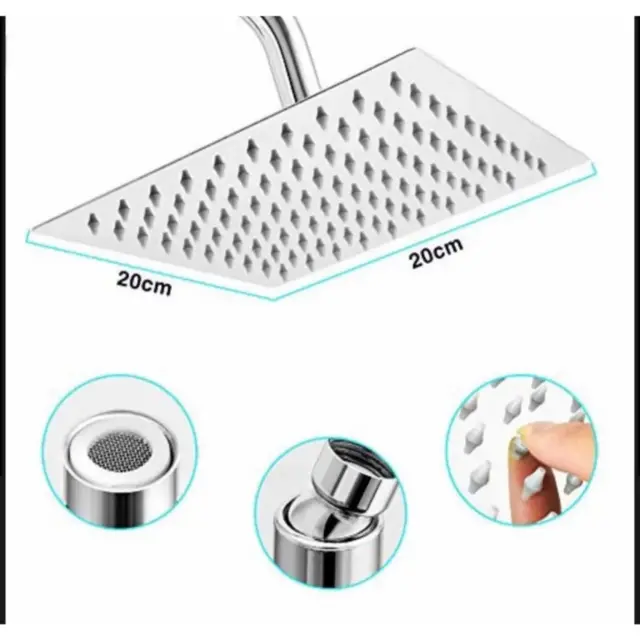 CABEZAL DE DUCHA CUADRADA TIPO LLUVIA (20 cm).