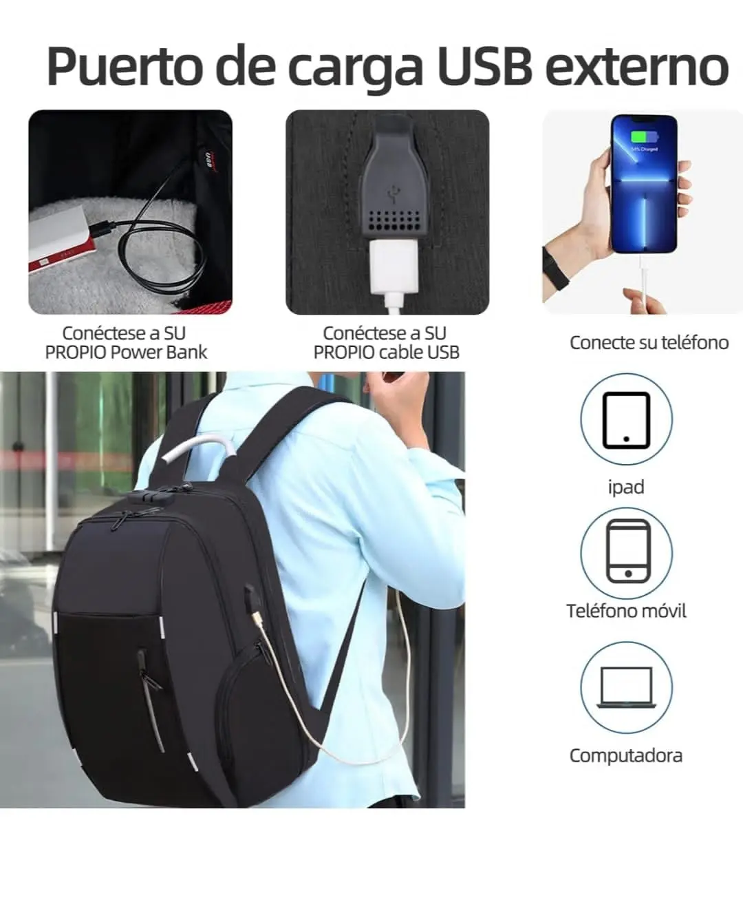 Mochila anti Robo con enchufe usb externo
